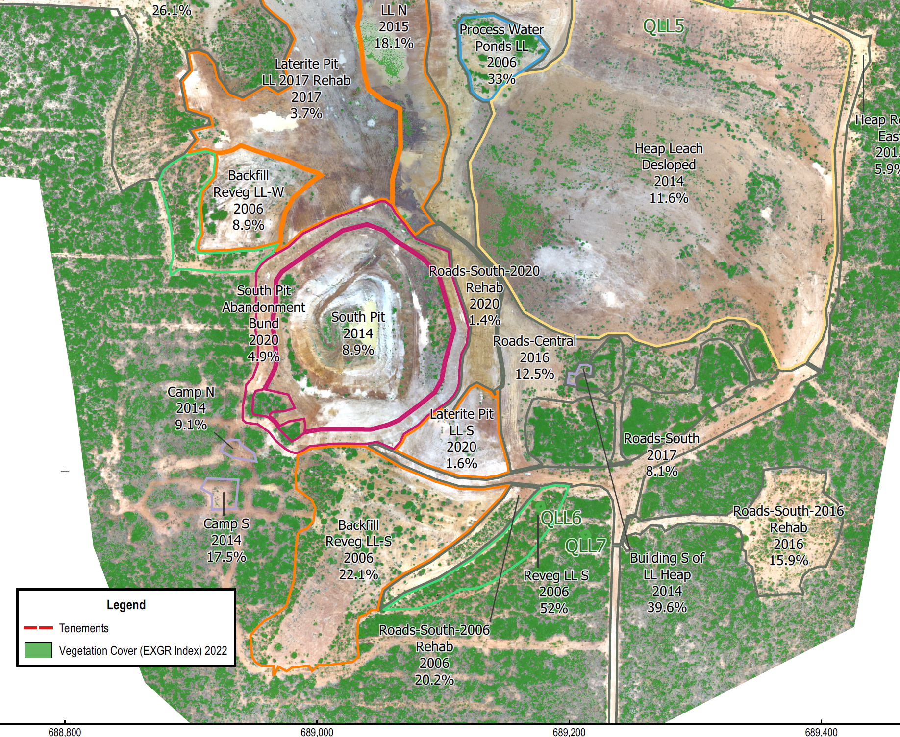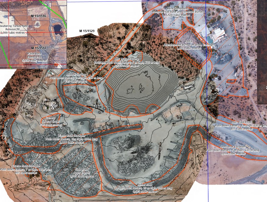 - Quantification of rehabilitation material volumes from drone survey.